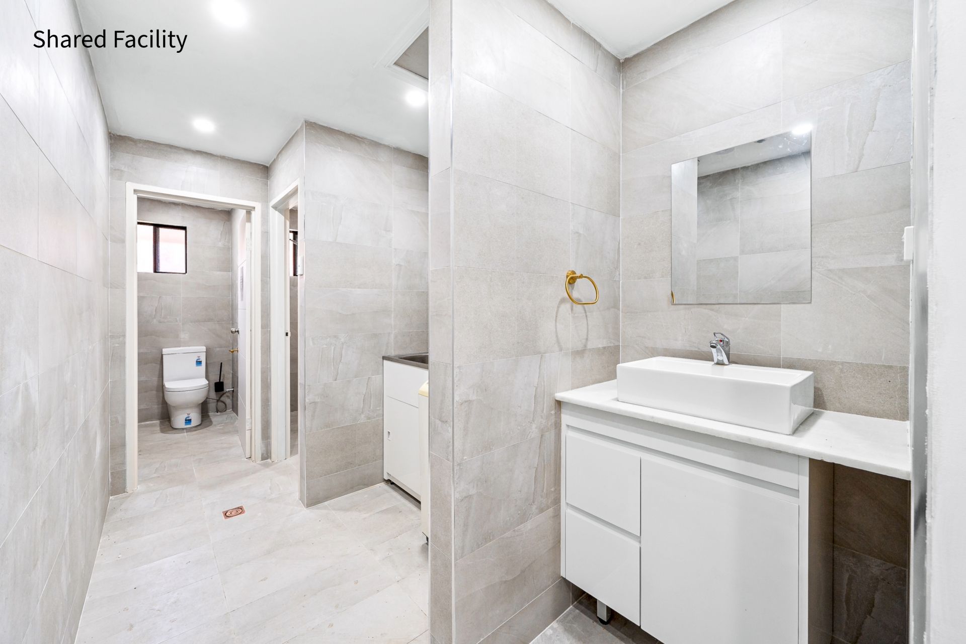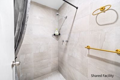 Three shared bathroom/shower facilities throughout the building