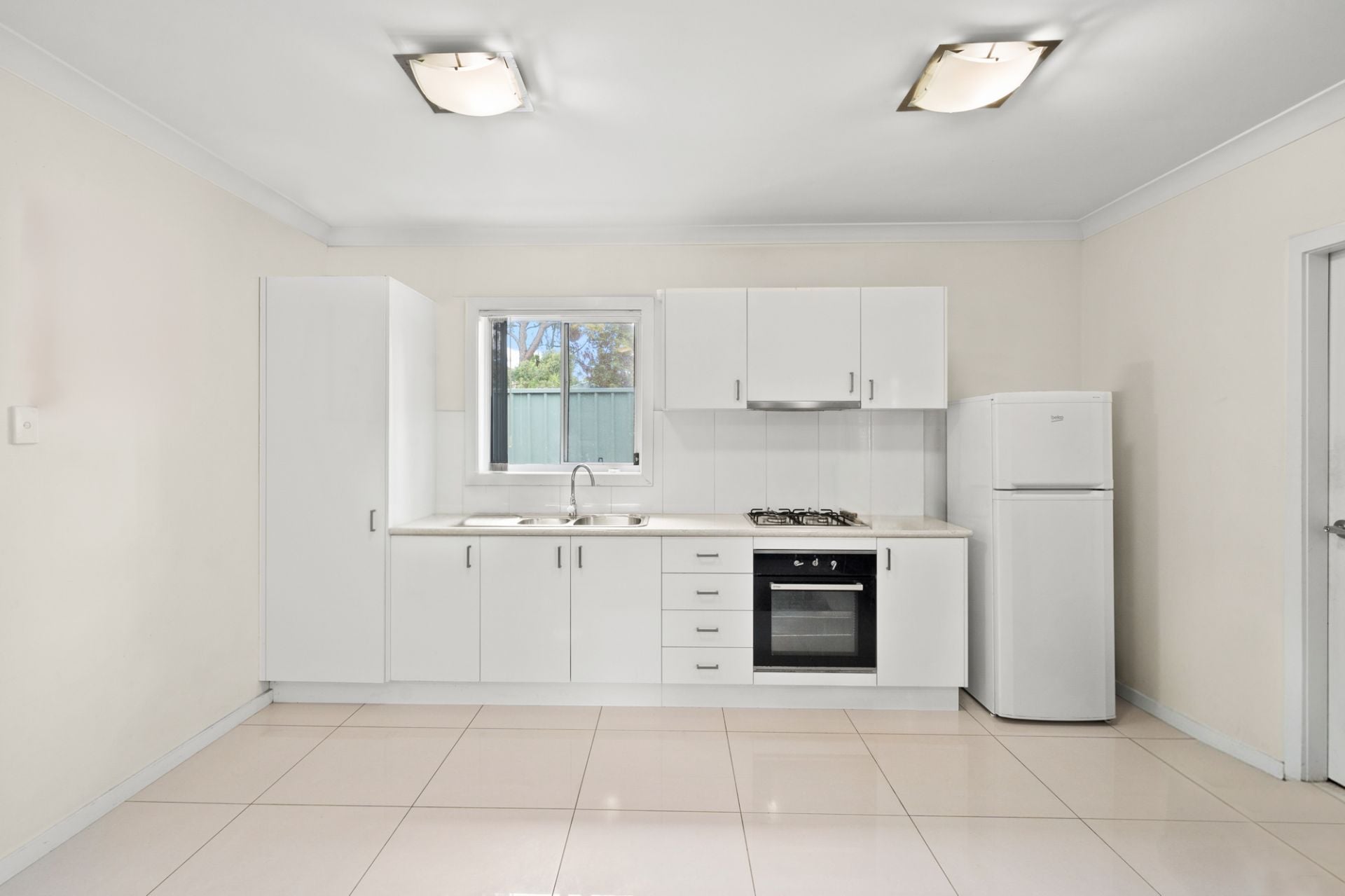 - A modern kitchen equipped with gas cooking and ample cupboard space