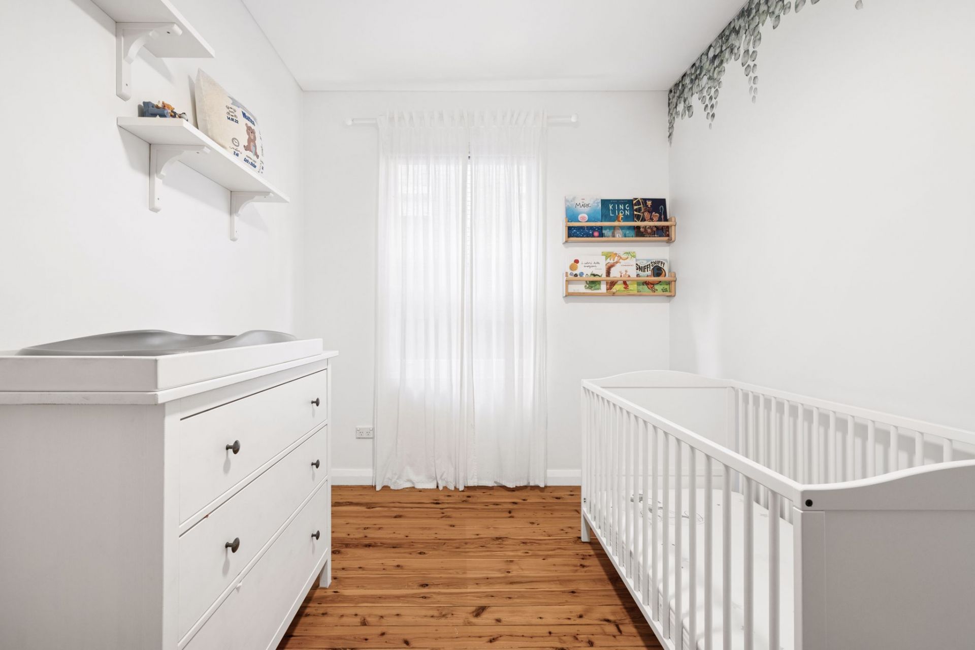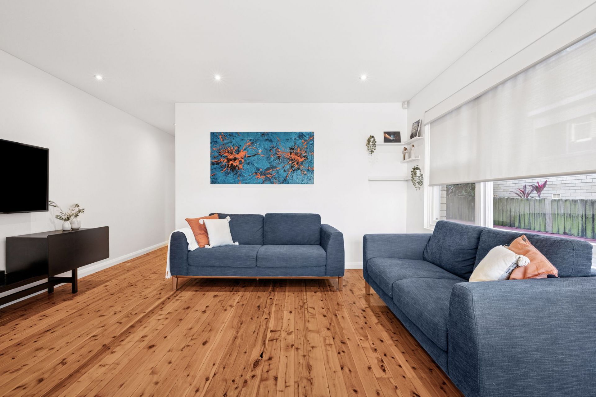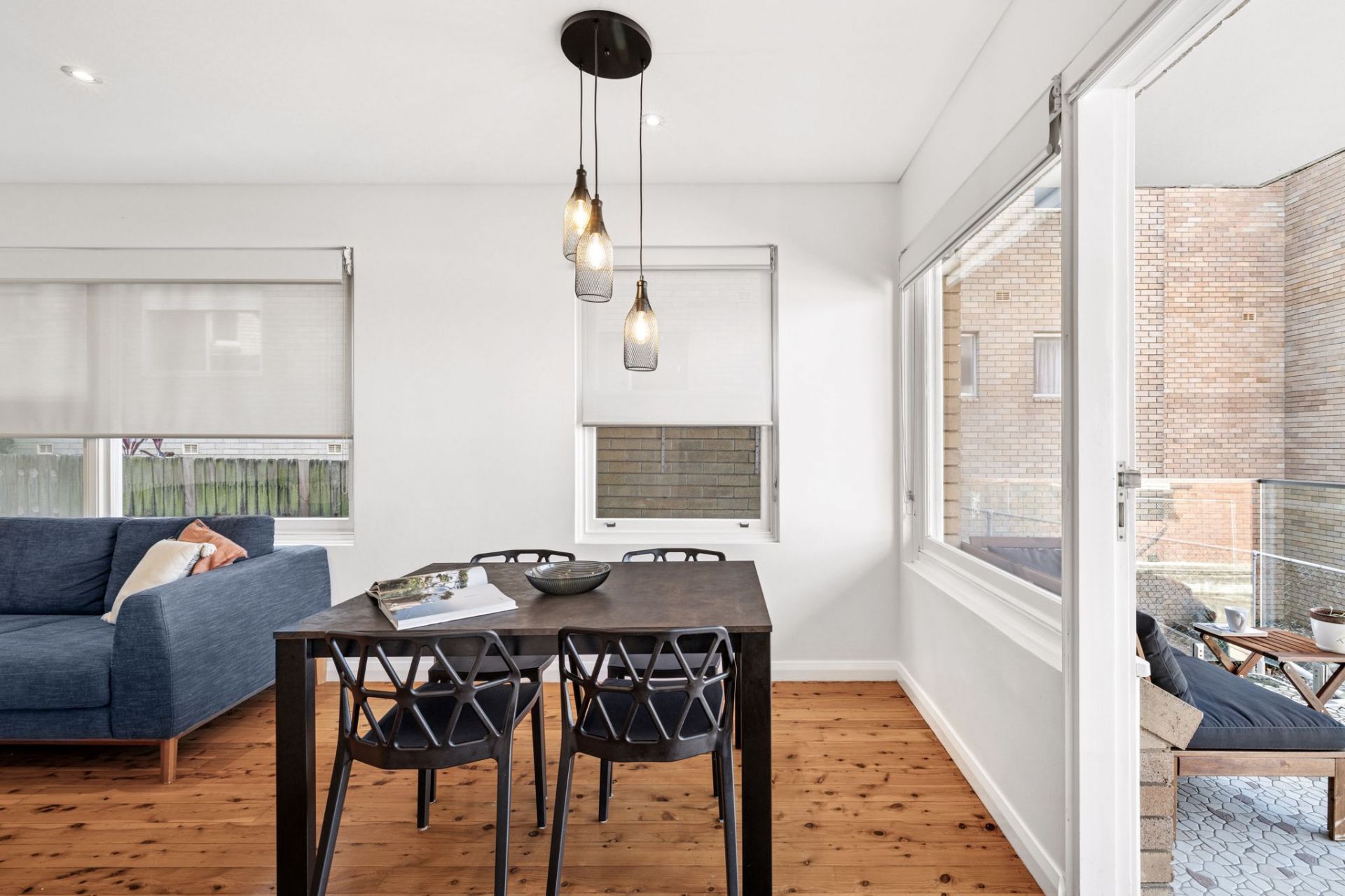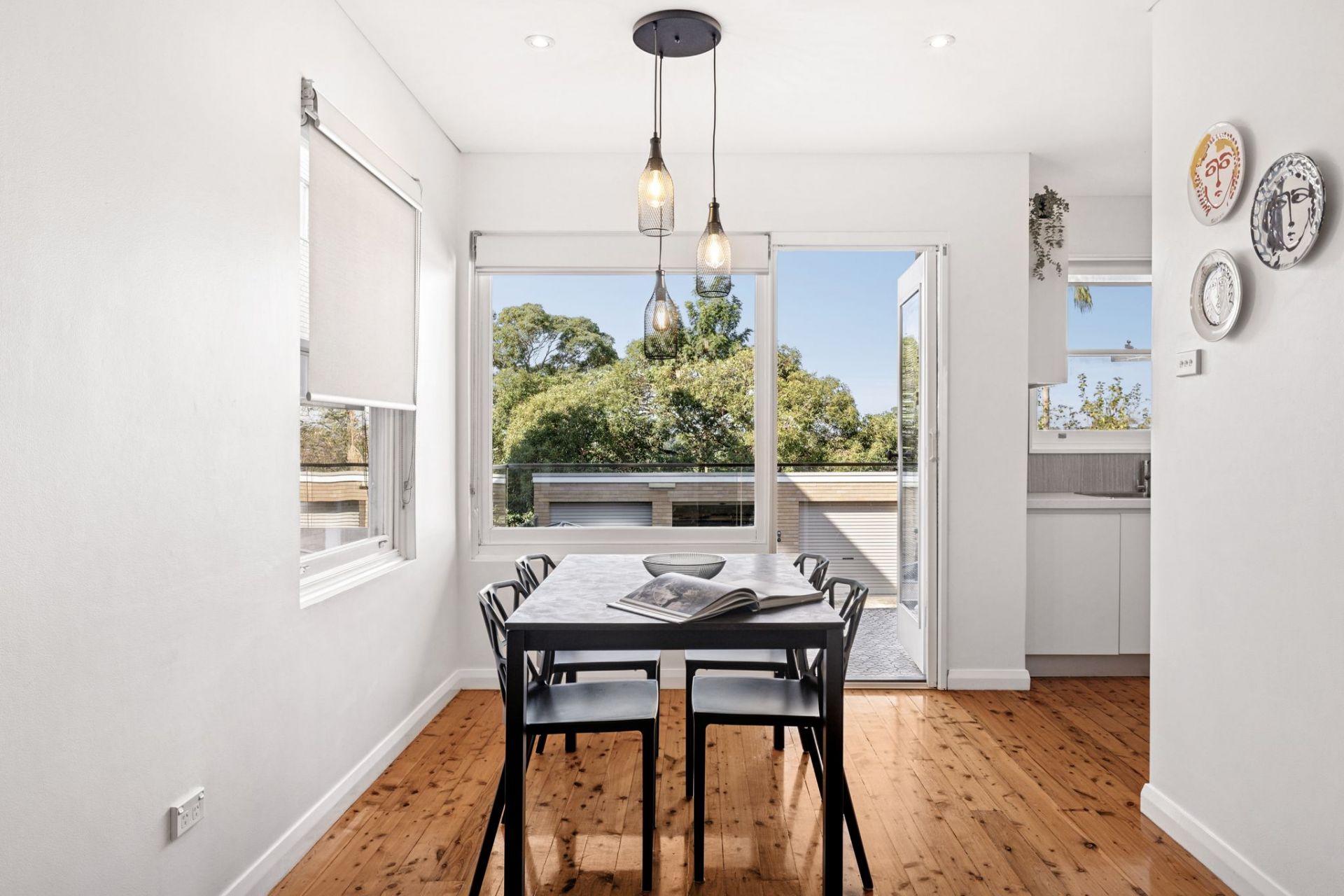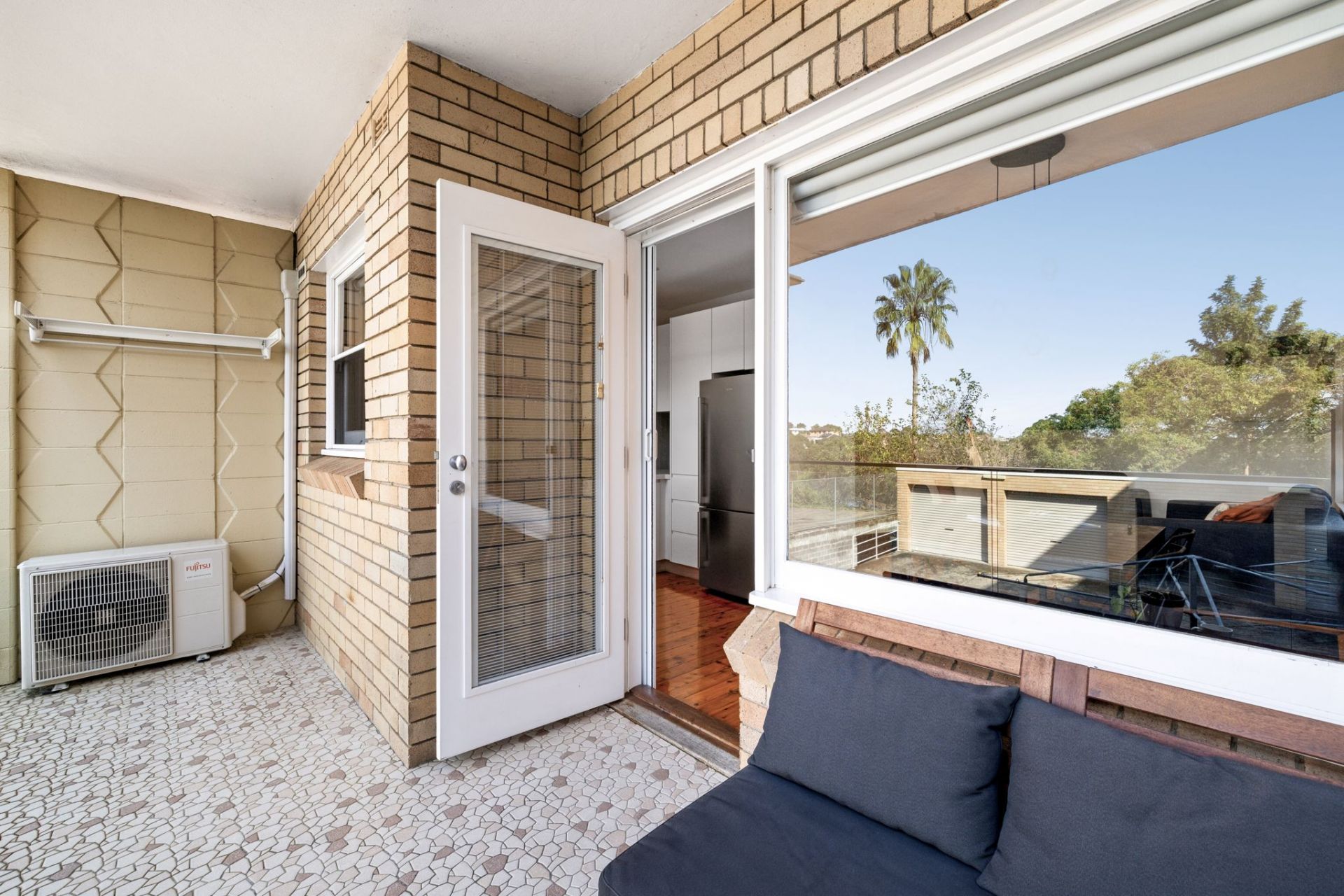 - Welcoming living area flows to a balcony and leafy view beyond